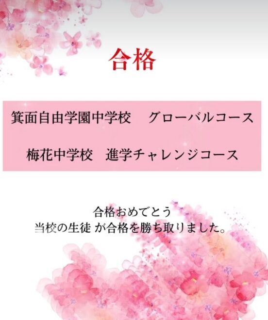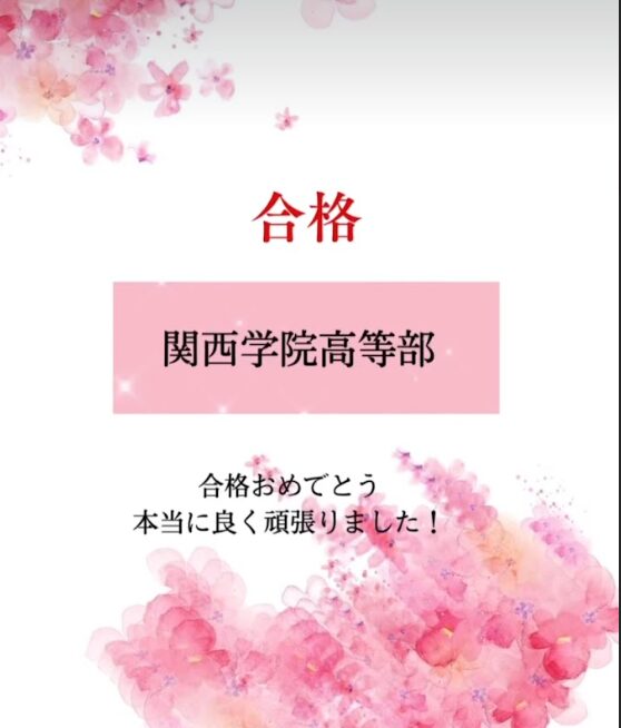 中学受験を最後までやり切り、大阪女学院中学校に見事合格しました。