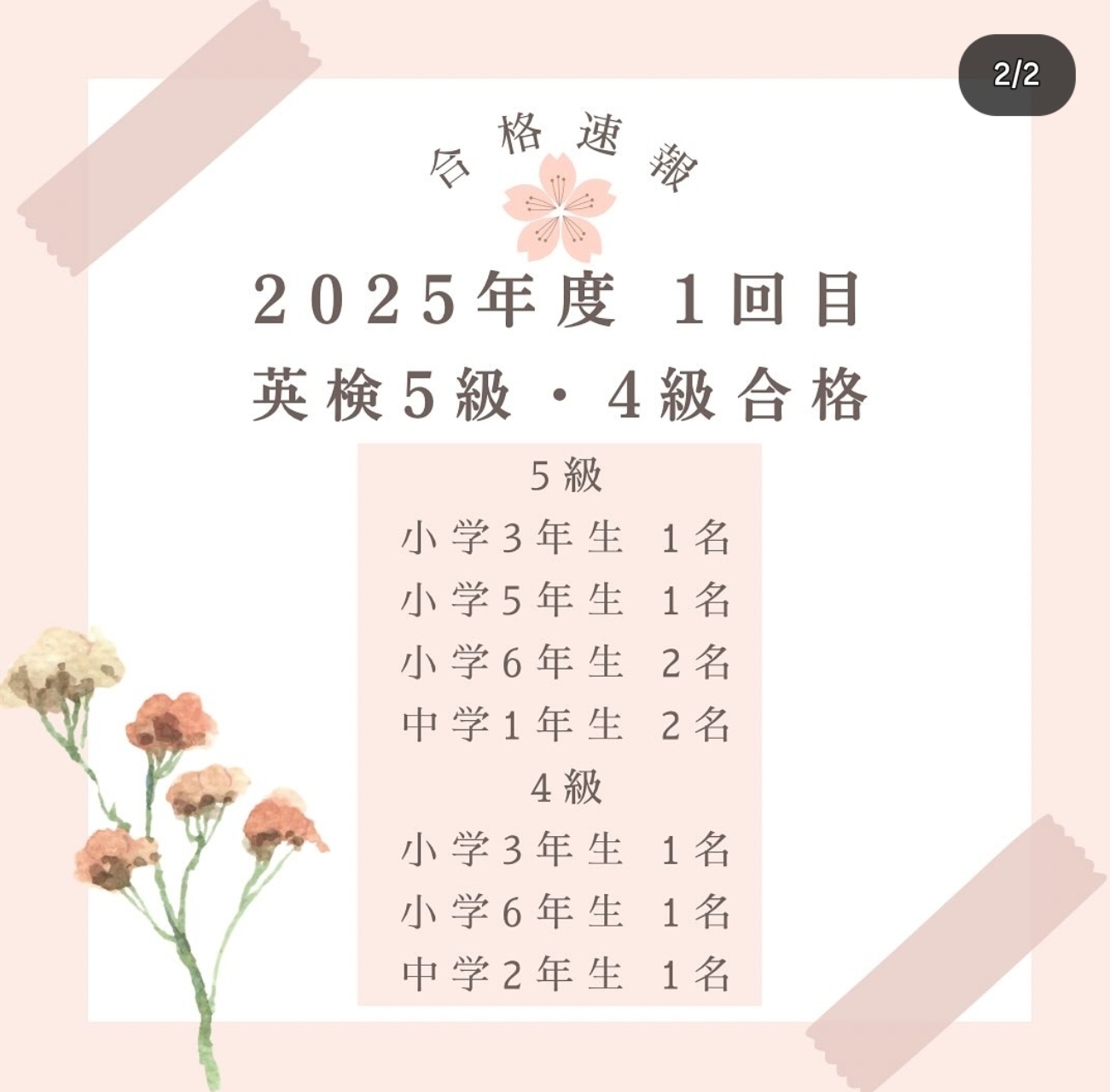 英検Ⓡ2級おめでとう(中3 N・Nくん)