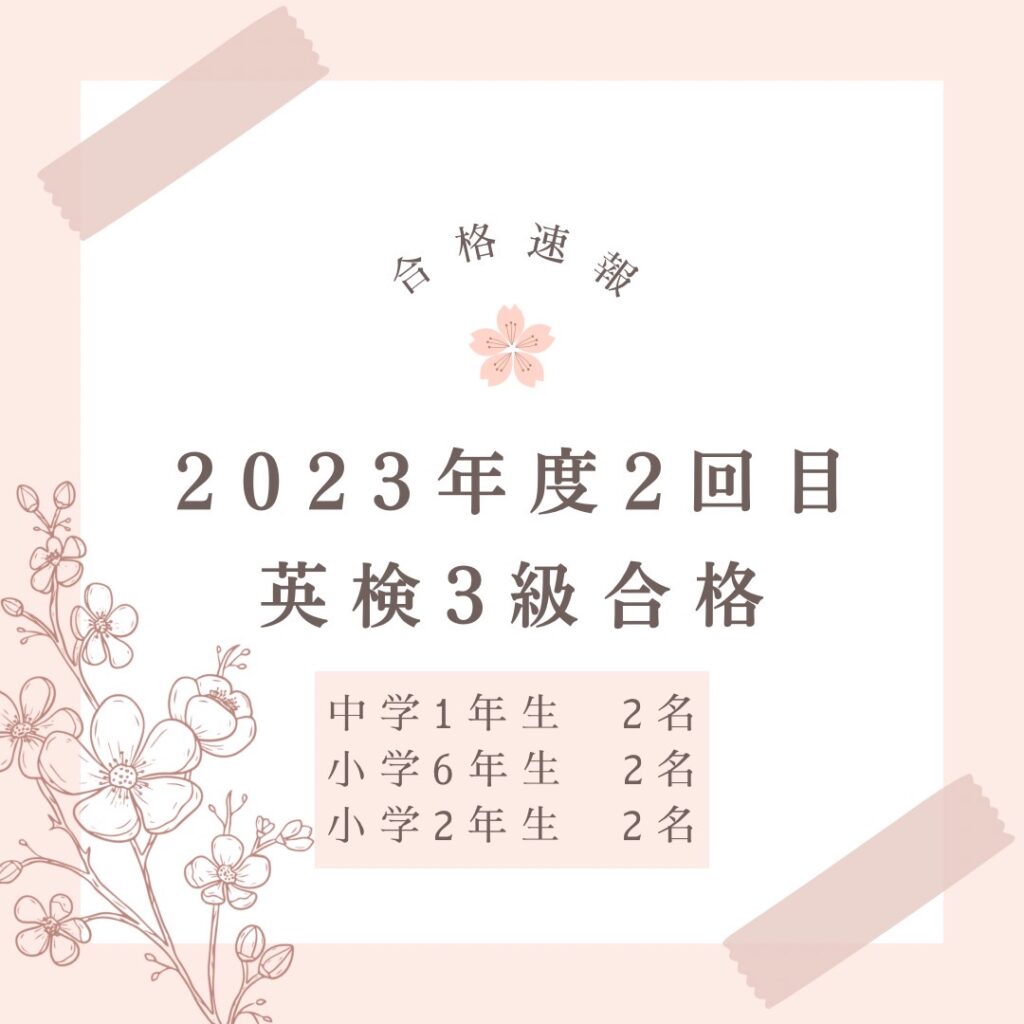 勉強だけではなく、英検も英語も継続。頑張って来たことは評価してもらえます。勉強もですが、いろんなことにチャレンジしていきましょう。