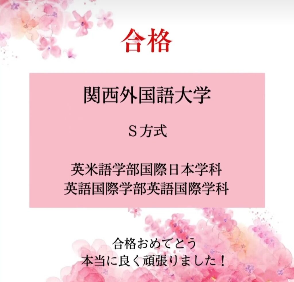 関西外国語大学 特別型選抜 合格(高3 T H さん)
