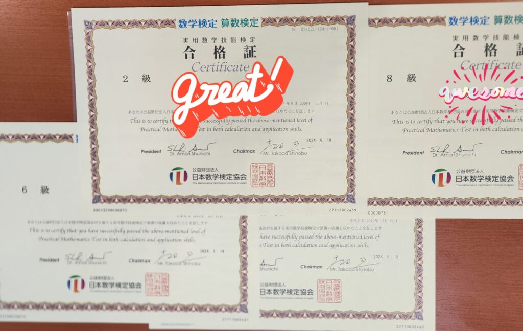 数検合格証が届きました!