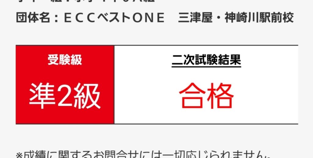 中学2年生最後のSCBTで、2級合格!(中学2年生 MAさん)